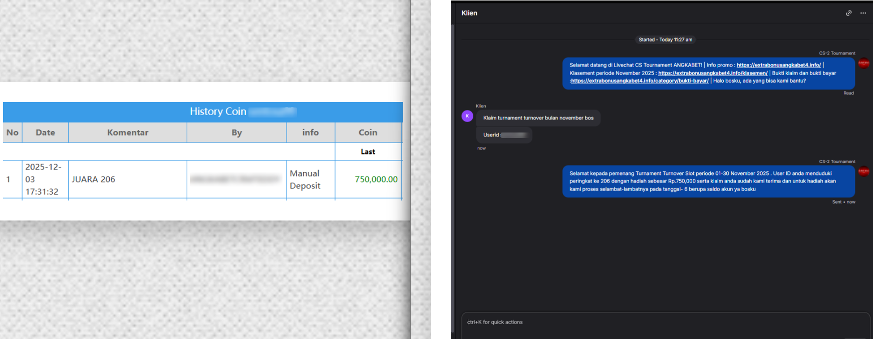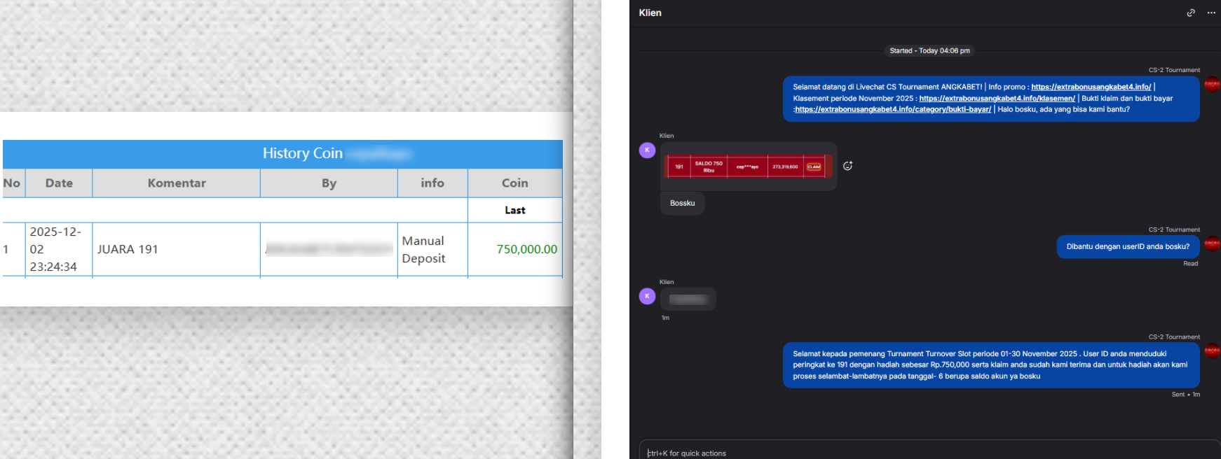 | 62 | 1 JUTA | b***og | 561,187,000 | BERHASIL |